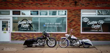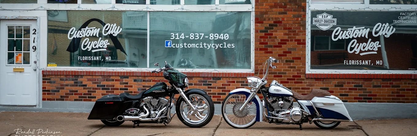 "Custom City Cycles, located in the historic Old Town Florissant, is a unique and reputable motorcycle service center. Our skilled technicians, who have combined, over 20 years of dealership experience and are fully certified and factory trained, offer comprehensive repairs and maintenance for almost every type of motorcycle on and off-road, with a particular focus on Harley Davidson motorcycles. From ESP warranty work to complex engine performance builds, we have you covered. At Custom City Cycles, we are equipped to work on and can communicate with the newest of Harley Davidson motorcycles. Visit us today in the heart of Florissant and experience the ultimate in motorcycle service!"